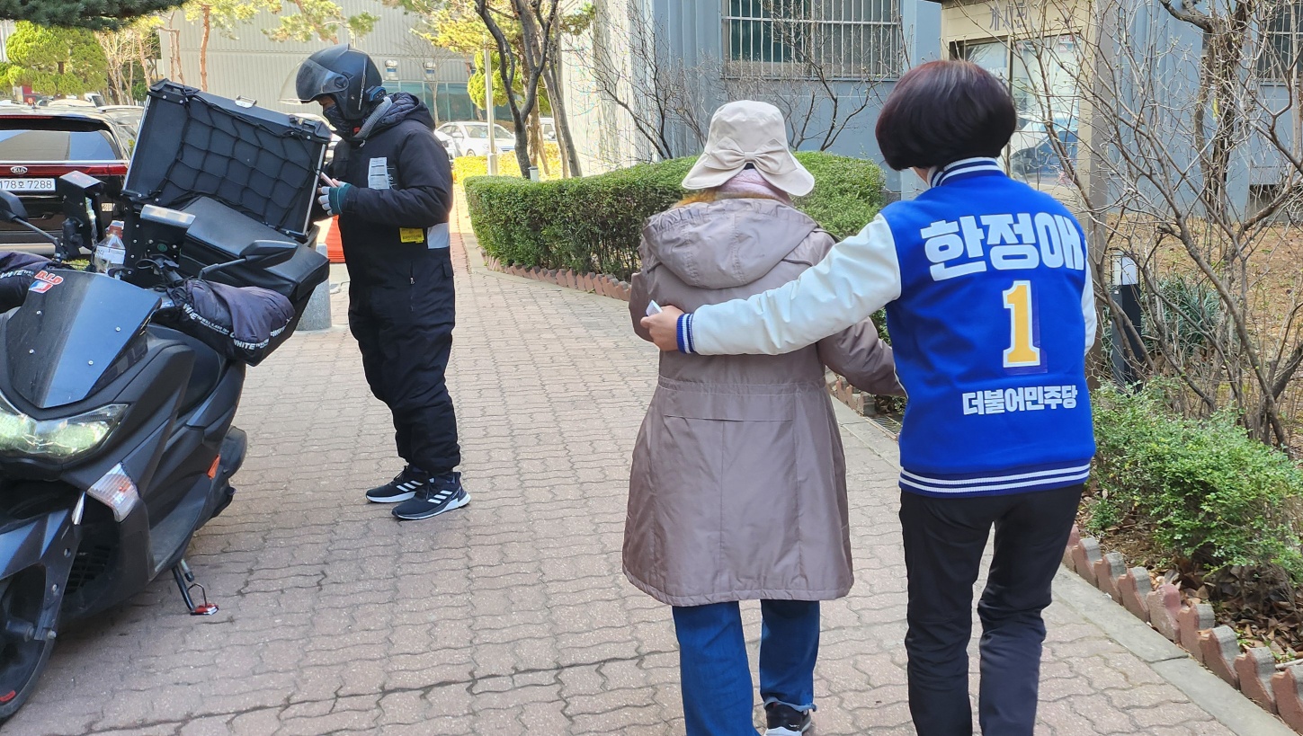 "여러분의 곁에 늘 한정애 의원이 있습니다."