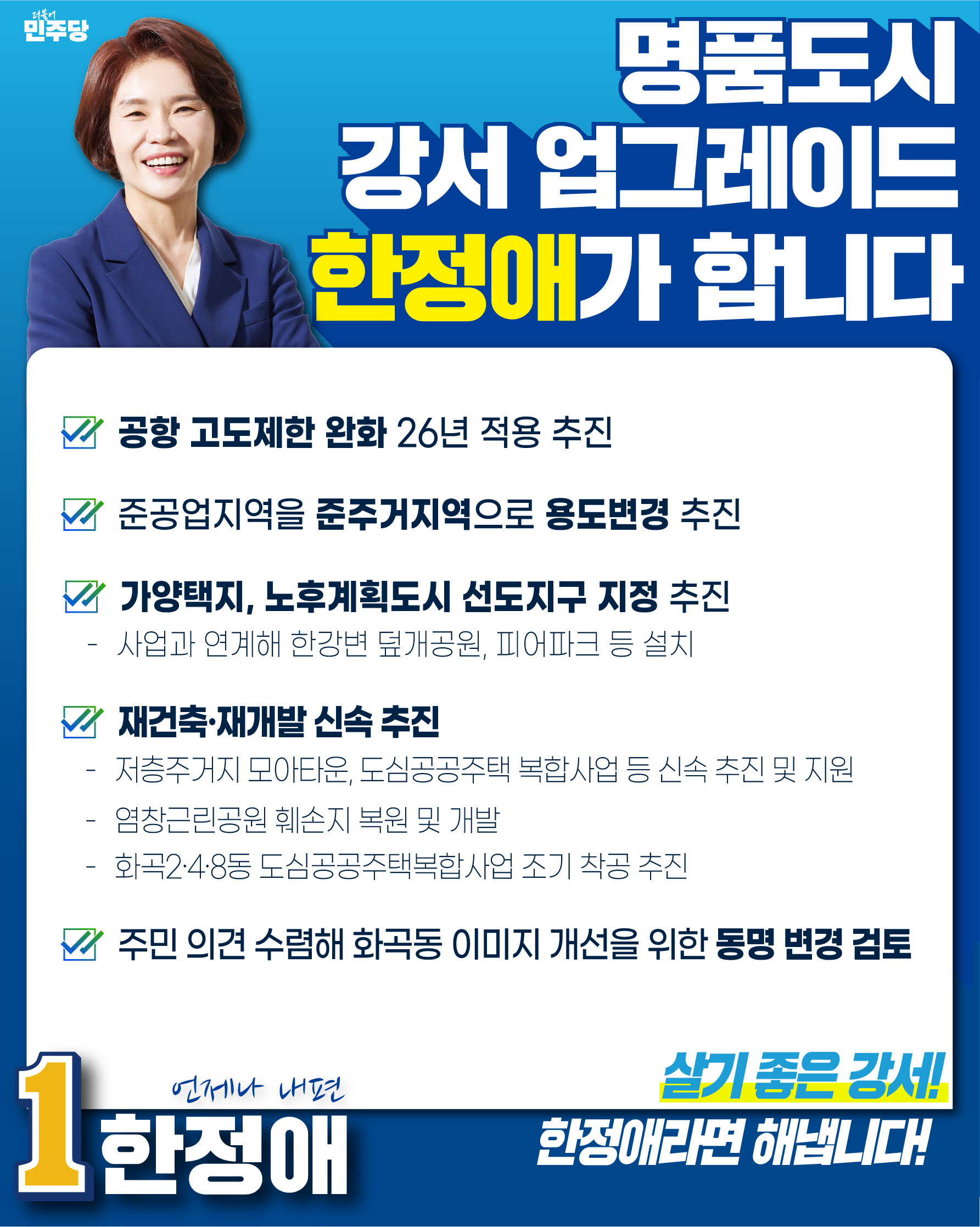 안전하고 편안한 강서! 한정애라면 해냅니다!