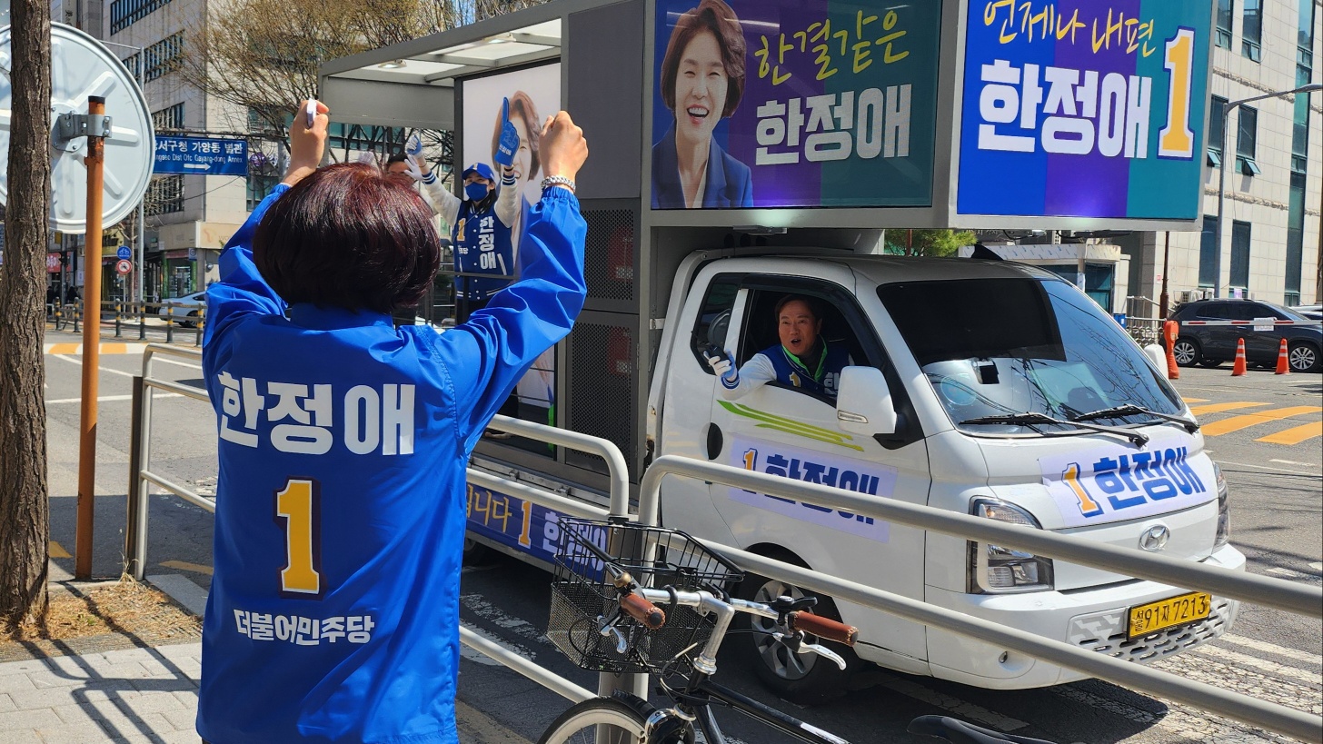 기호1번 한정애 계속 달려나가겠습니다.