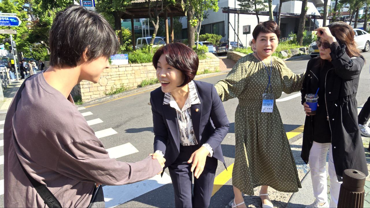 "여러분의 곁에 늘 한정애 의원이 있습니다."