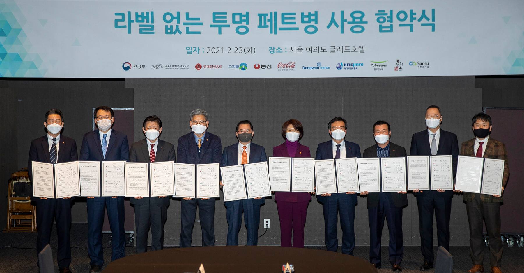 올해 말까지 출시되는 먹는 샘물 제품의 20%이상을 전환하는 목표를 약속하는 자리였습니다.