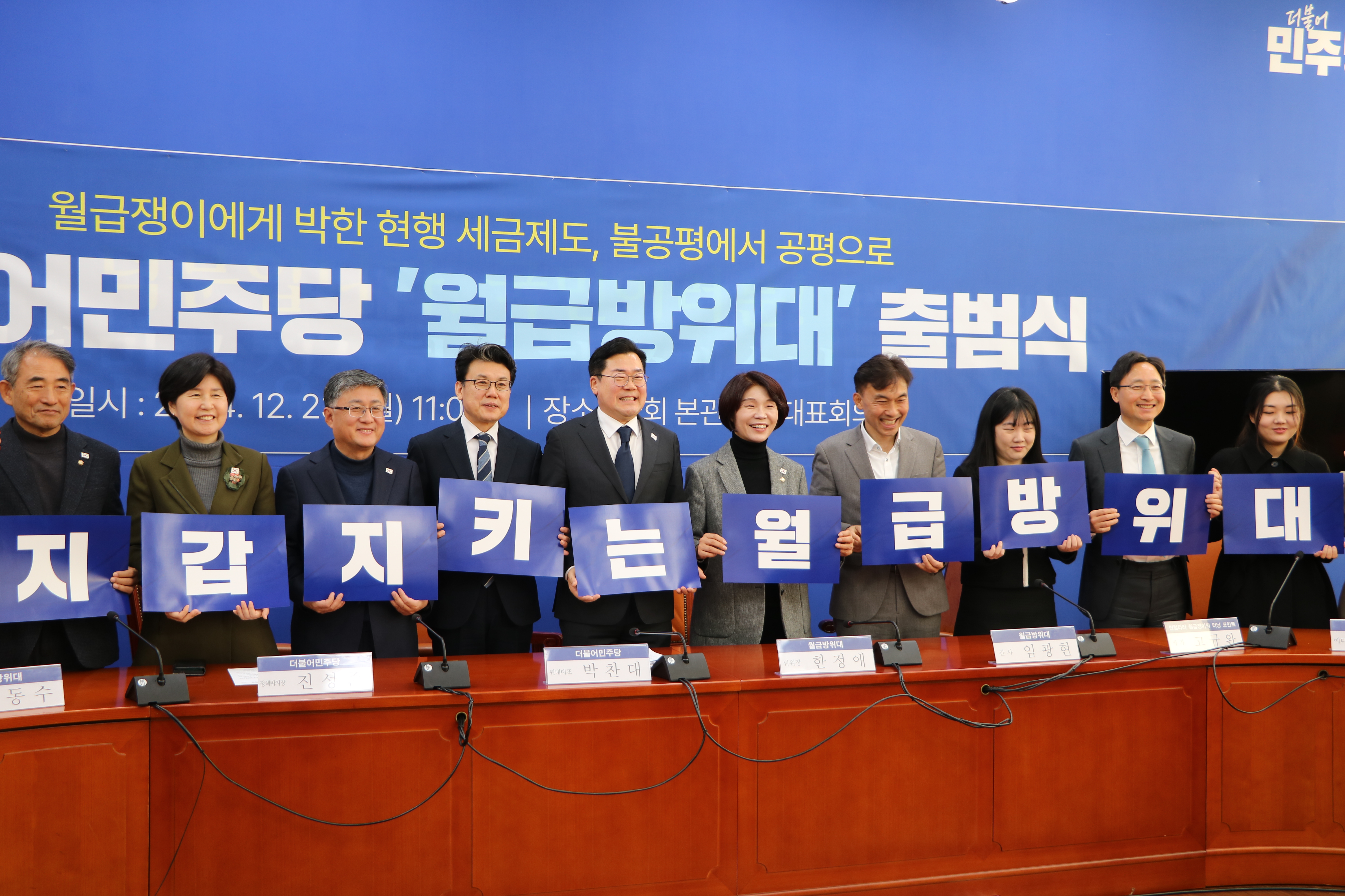 더불어민주당 월급방위대는 제가 위원장을, 임광현 의원이 간사를 맡았고 정성호, 유동수, 백혜련, 김성환 의원님이 고문을 맡고 고민정, 윤준병, 정태호, 최기상, 이병진, 조인철, 백승아, 노종면, 강유정, 박해철, 박홍배 의원 등 '월급쟁이' 출신 의원들이 위원으로 활동할 예정입니다.
