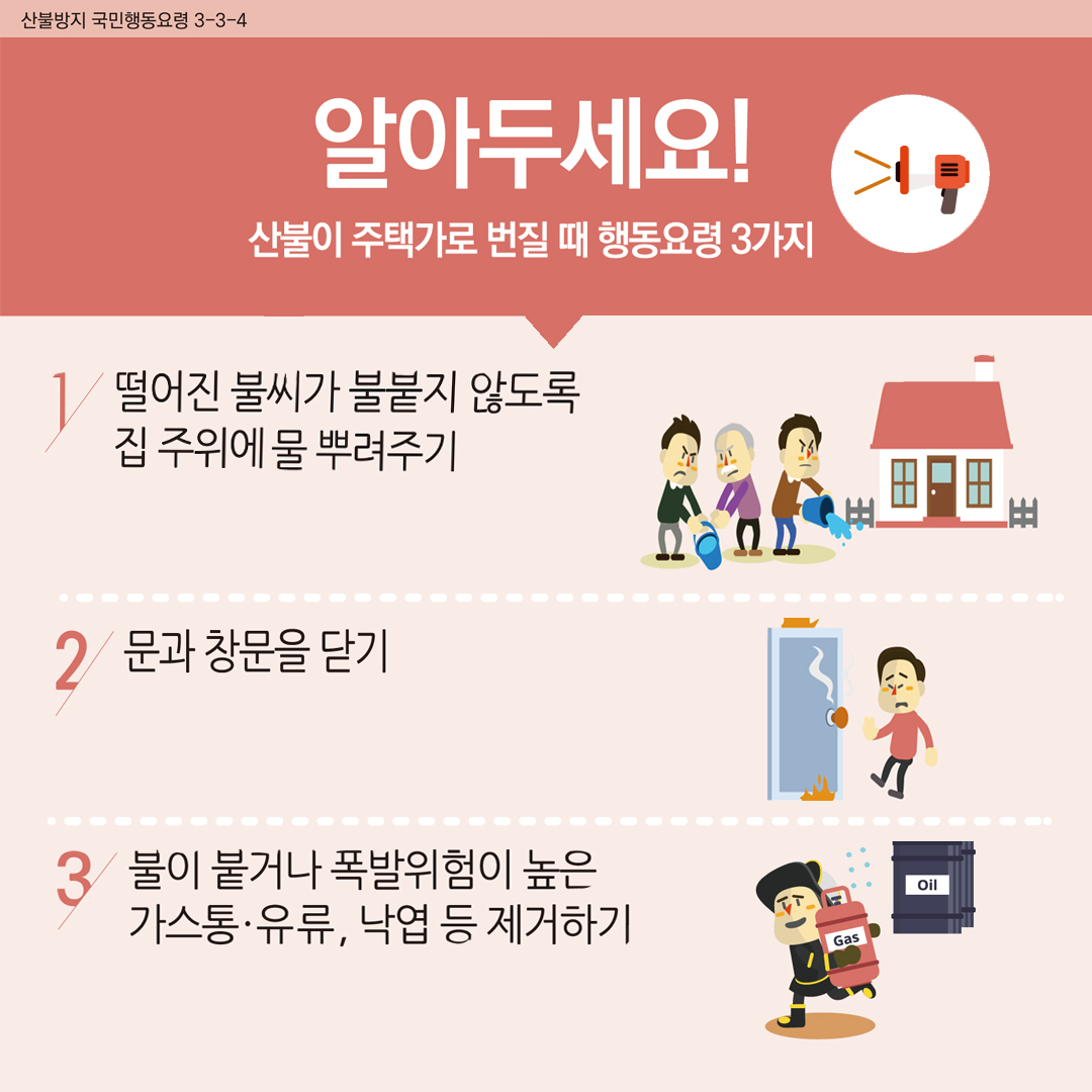 🔹산불이 주택가로 번질 때 행동요령 3가지