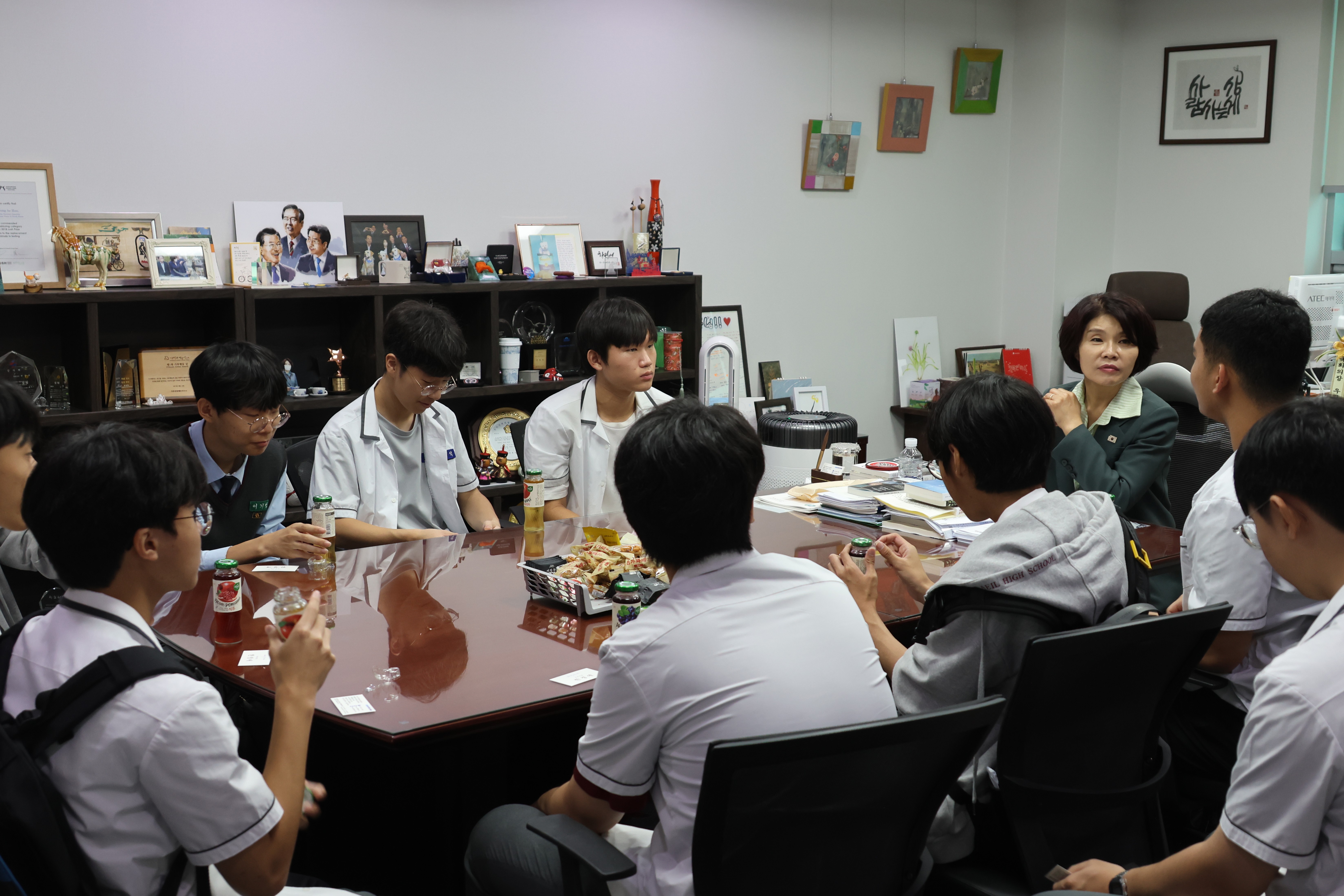 멋진 포토존이 있는 잔디광장을 지나 의원회관 집무실에 마주앉아 이야기를 나누니, 잠시 제 학창 시절로 돌아간 듯한 기분이 들었습니다.