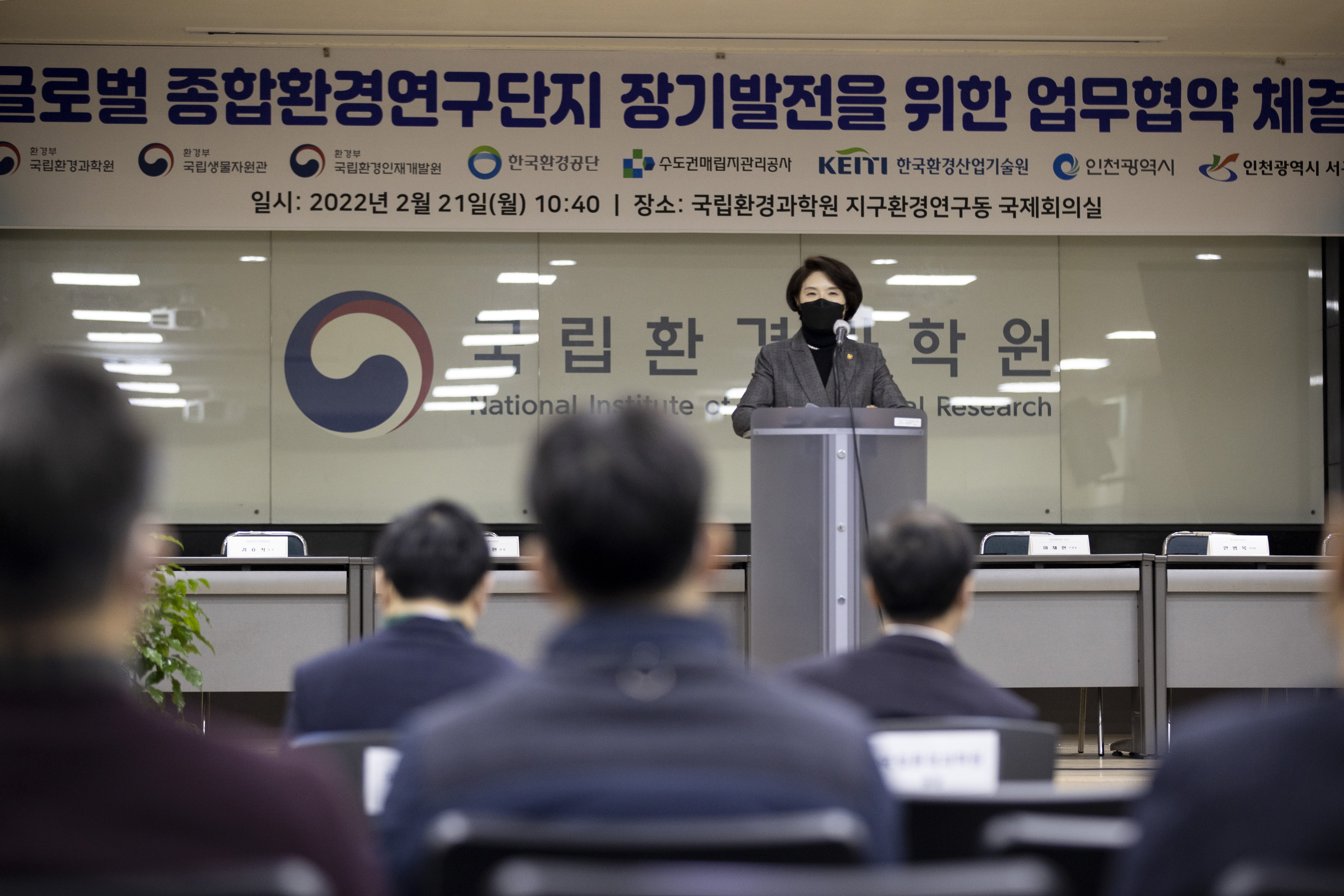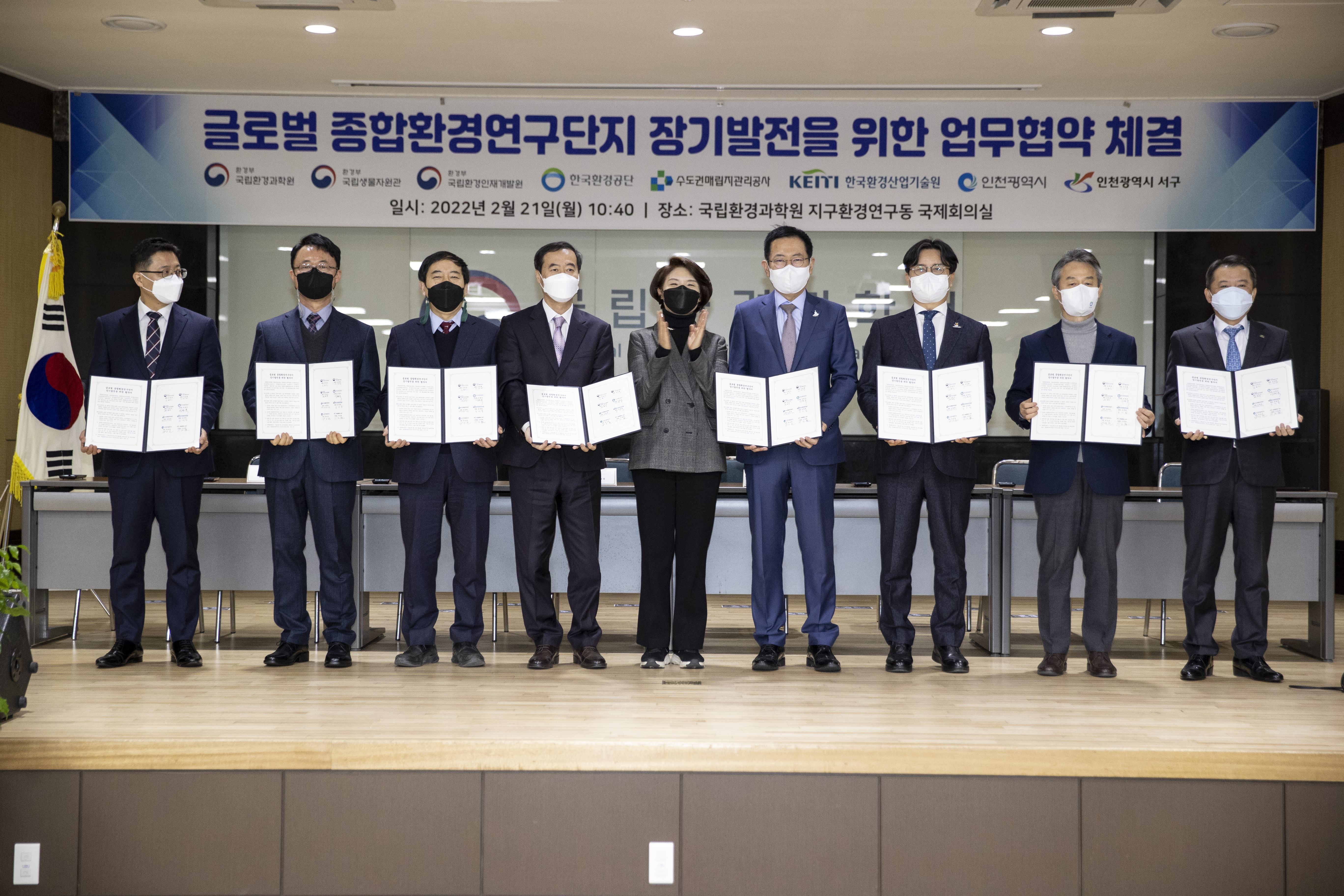 이어 국립환경과학원을 포함한 8개 관계기관*과 '국제적인 종합환경연구단지 장기발전을 위한 업무협약식'을 가졌습니다.