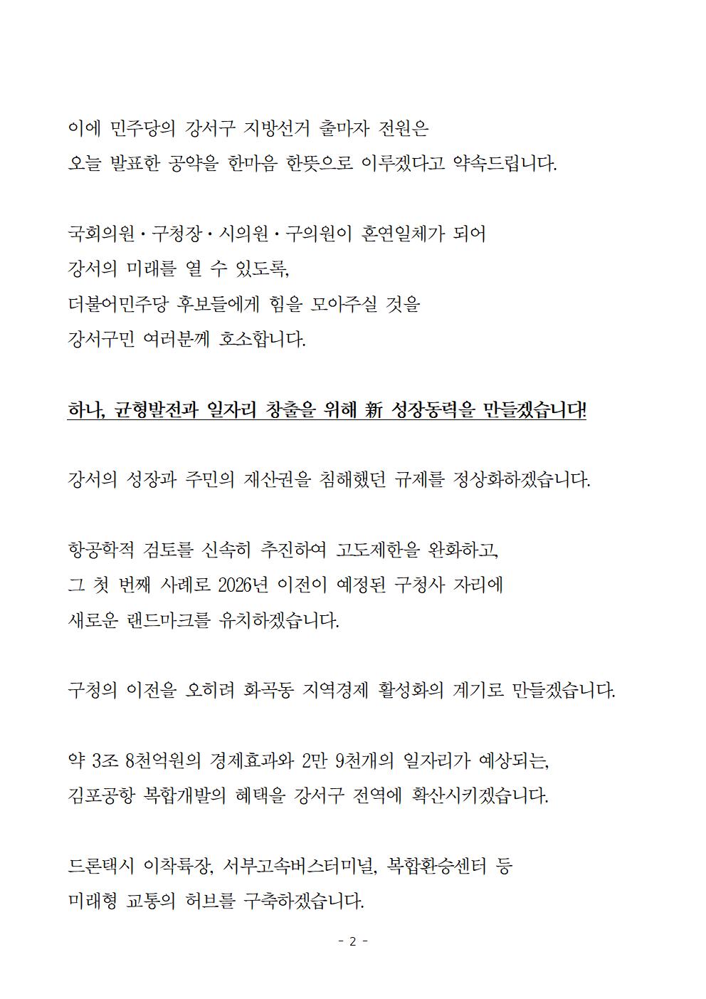 강서를 사랑하고 발전시키고자 하는 후보들의 의지를 꾹꾹 눌러 담은 공동공약 선포문을 살펴봐주시고 많은 성원 부탁드립니다.