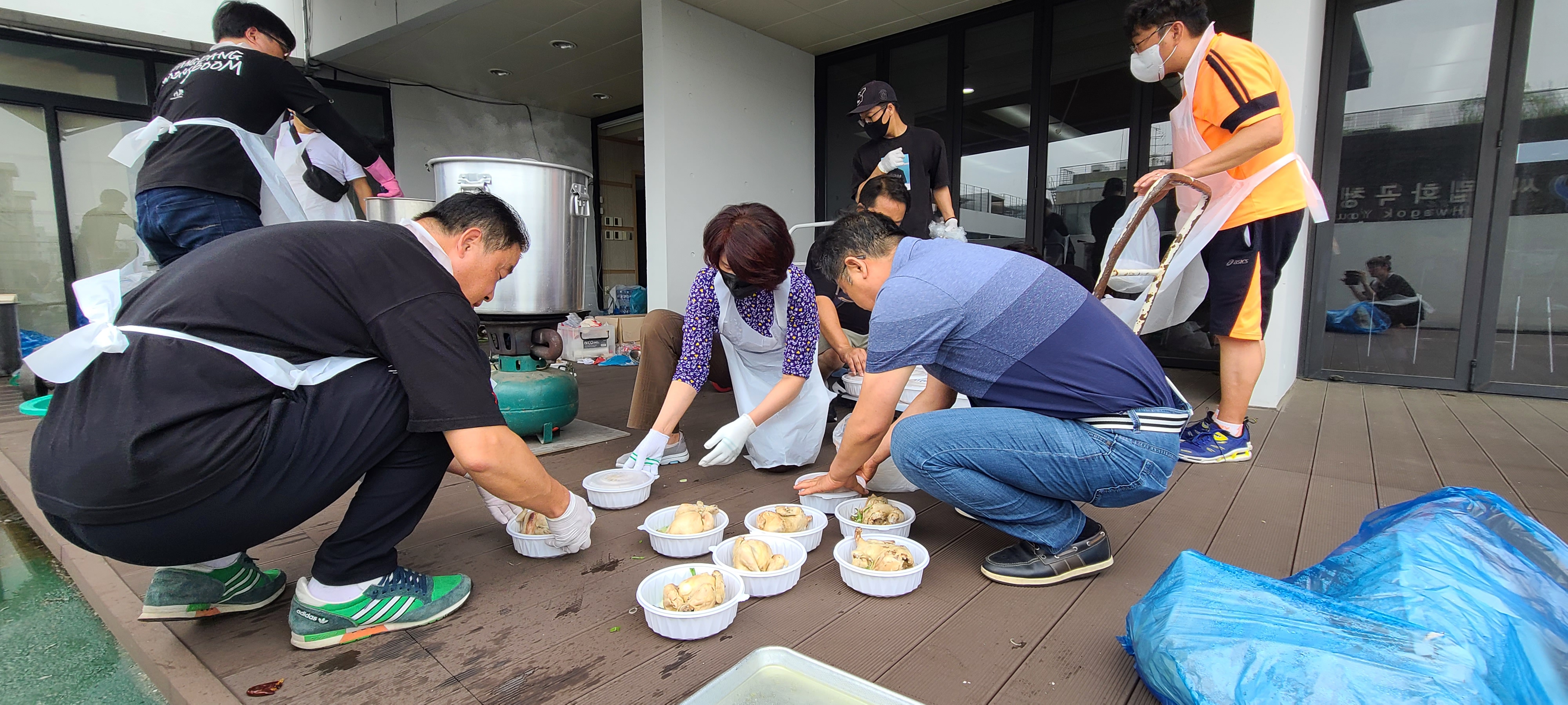 이제 모든 준비를 완료하고, 정성 가득 담긴 삼계탕을 어르신들께 나눠드렸답니다.