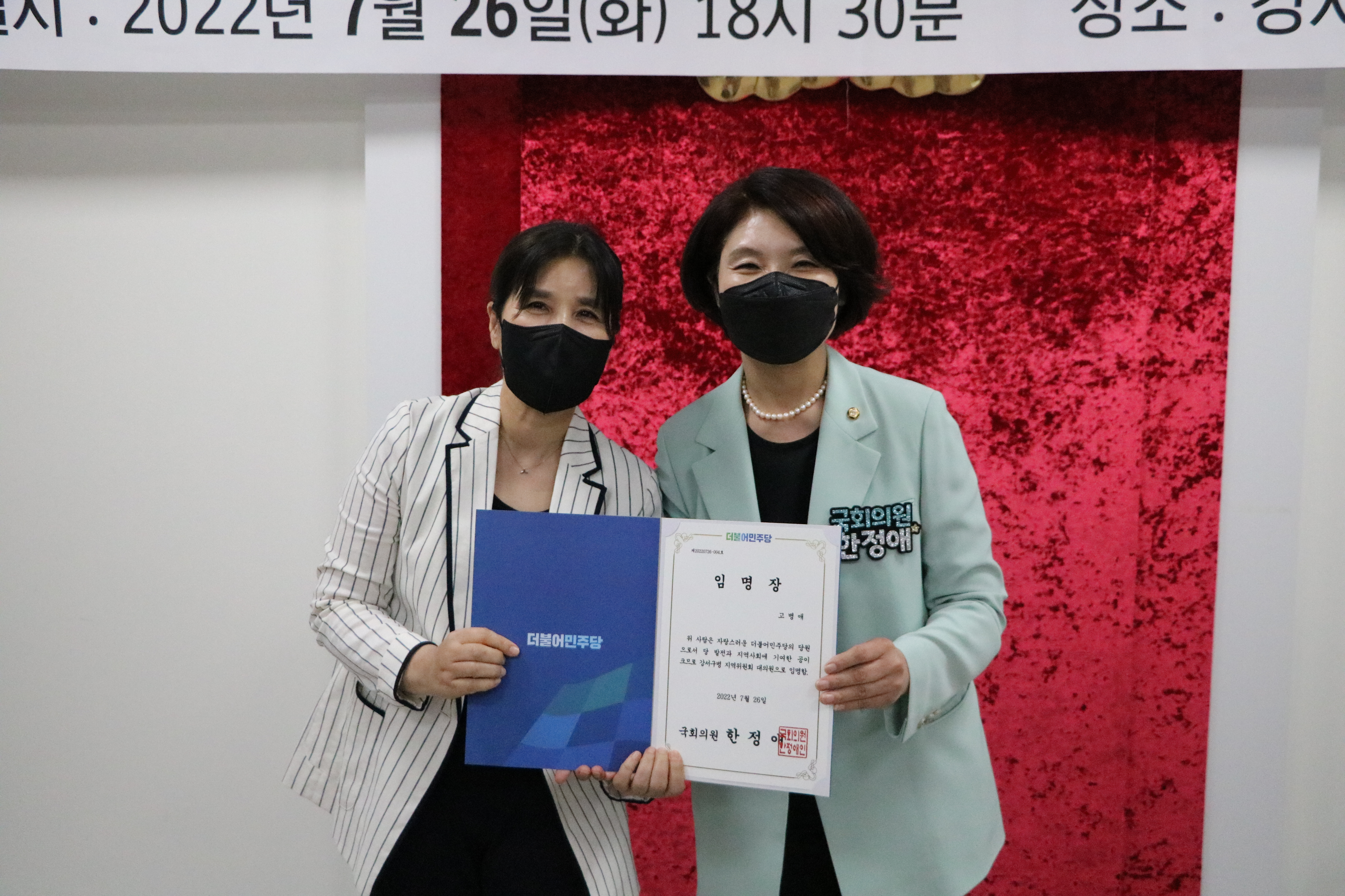 더불어 강서(병) 지역위원회가 더 큰 발전을 할 수 있도록 여러분의 많은 격려와 응원 부탁드립니다.