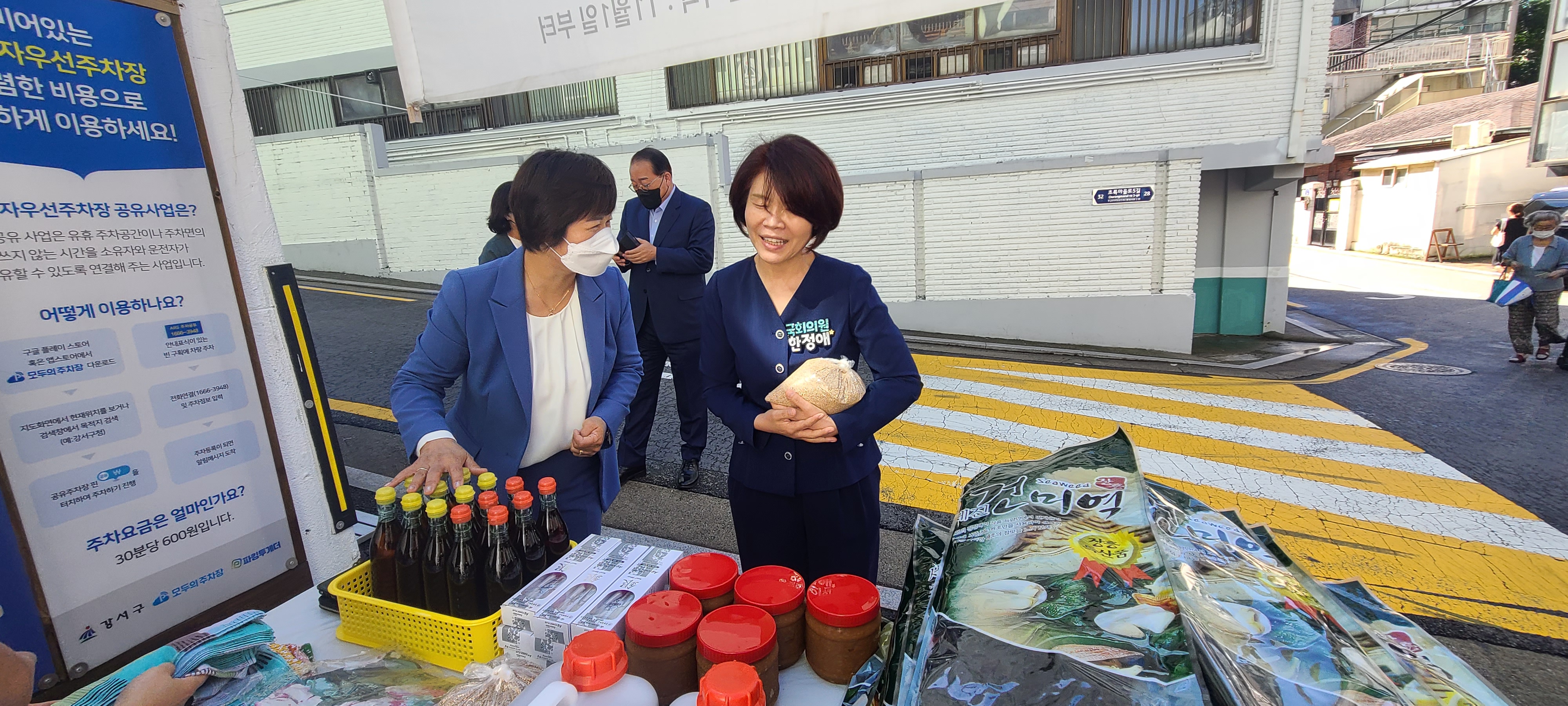 한정애 의원도 들기름, 참기름, 깨, 된장, 건미역! 양손 가득 구입했습니다.^^