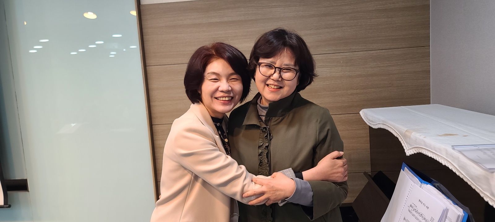 김광숙 여사님의 피아노 반주에 맞춰 노래 한 소절을 불러보았습니다. ♪~♬~♩
