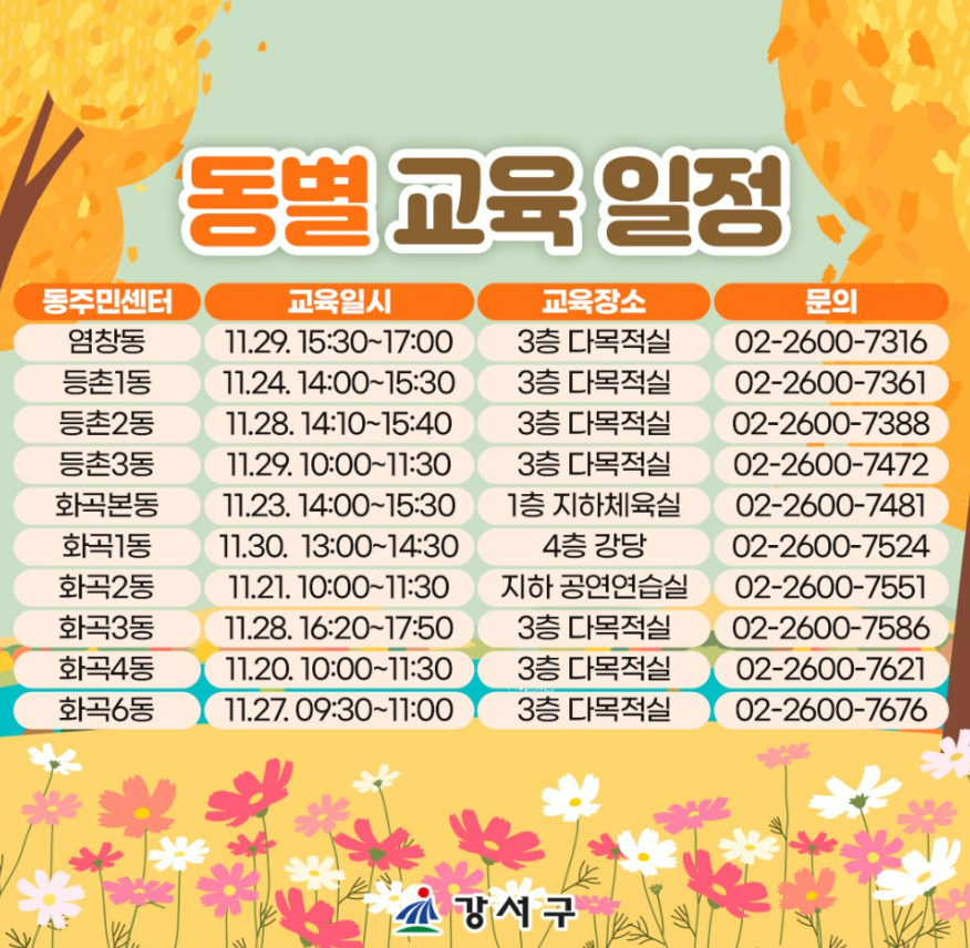 누구나 편안한 안전안심 도시, 강서! 📢화곡8동 교육일시가 변경되었습니다! ★12월 5일 15시~16시30분★...