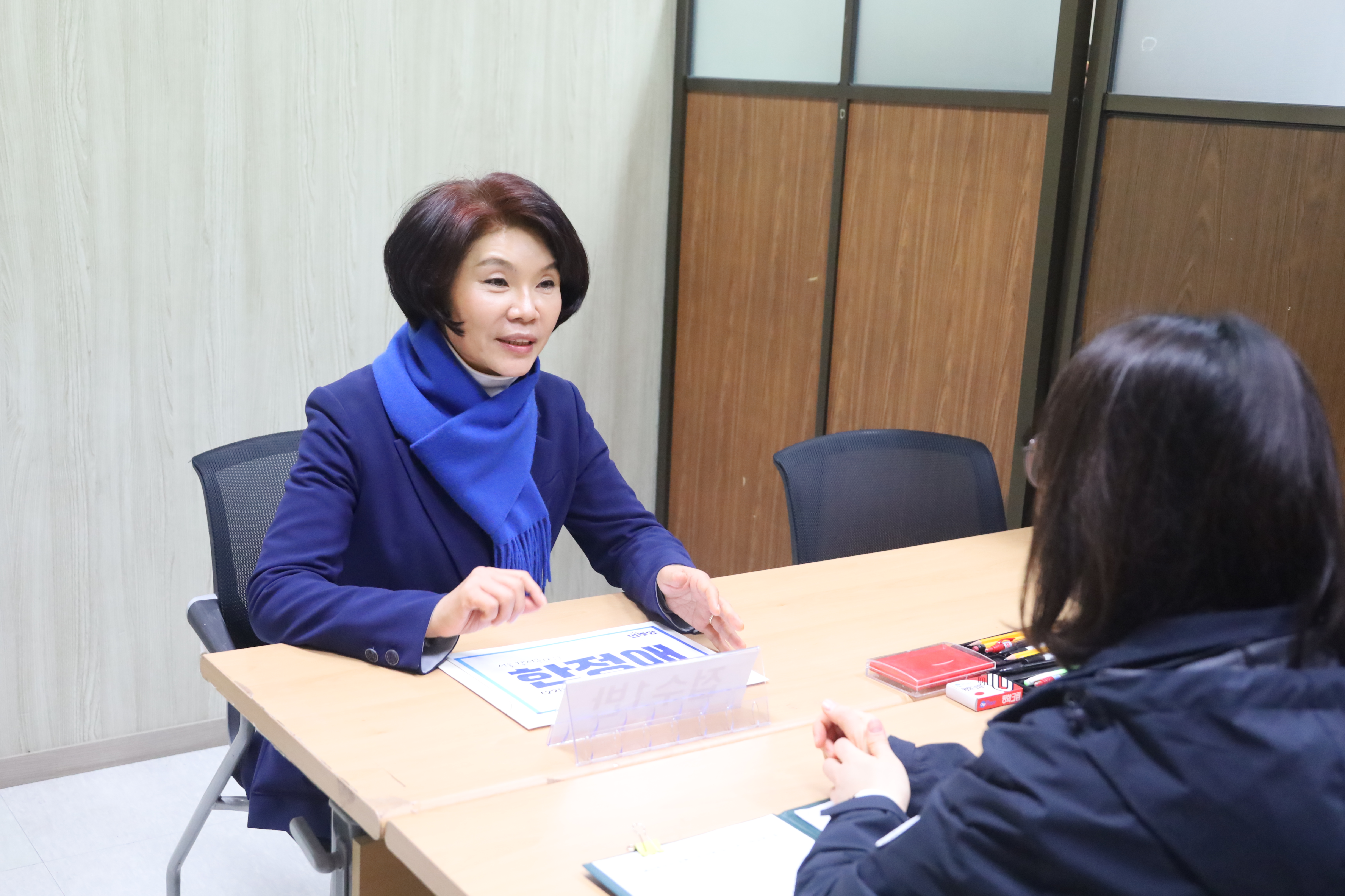 "여러분의 곁에 늘 한정애 의원이 있습니다."
