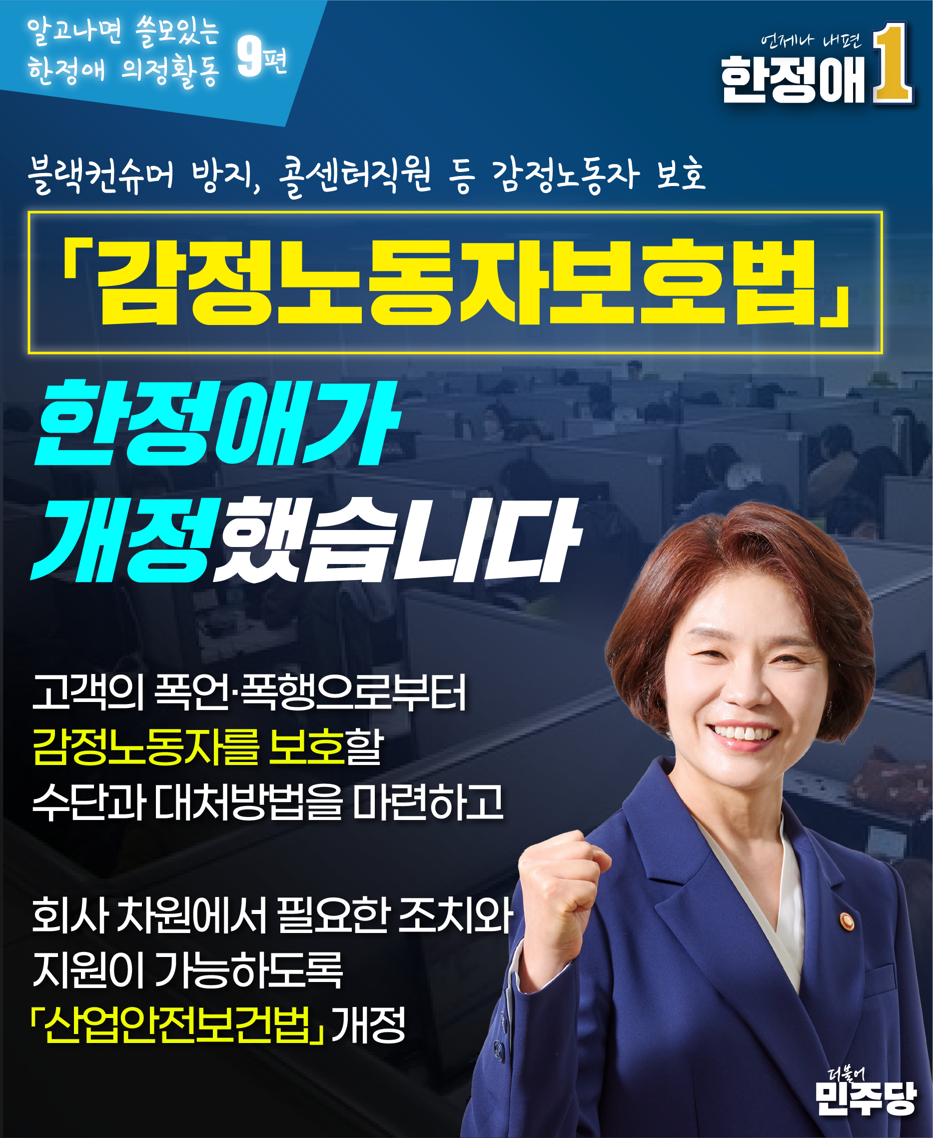 감정노동자보호법, 한정애가 개정했습니다.