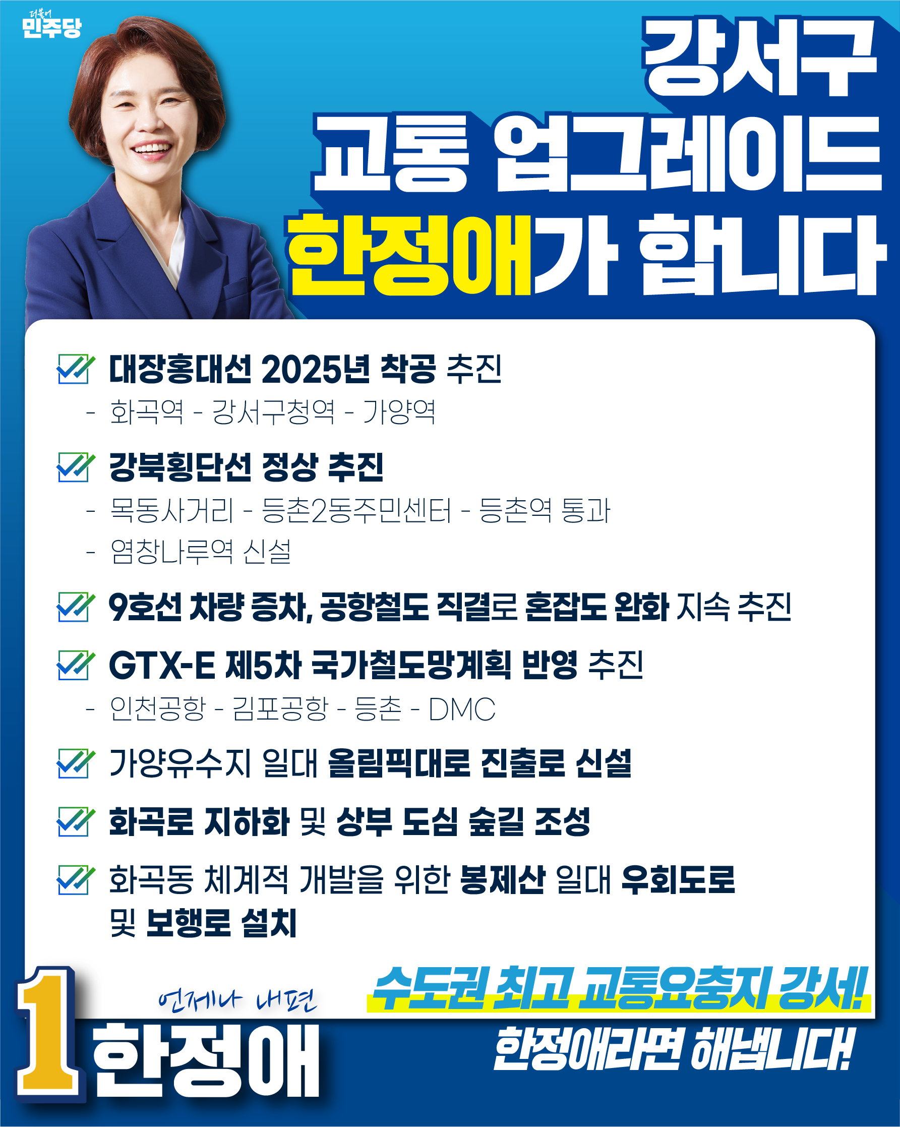 수도권 최고 교통요충지 강서! 한정애라면 해냅니다!