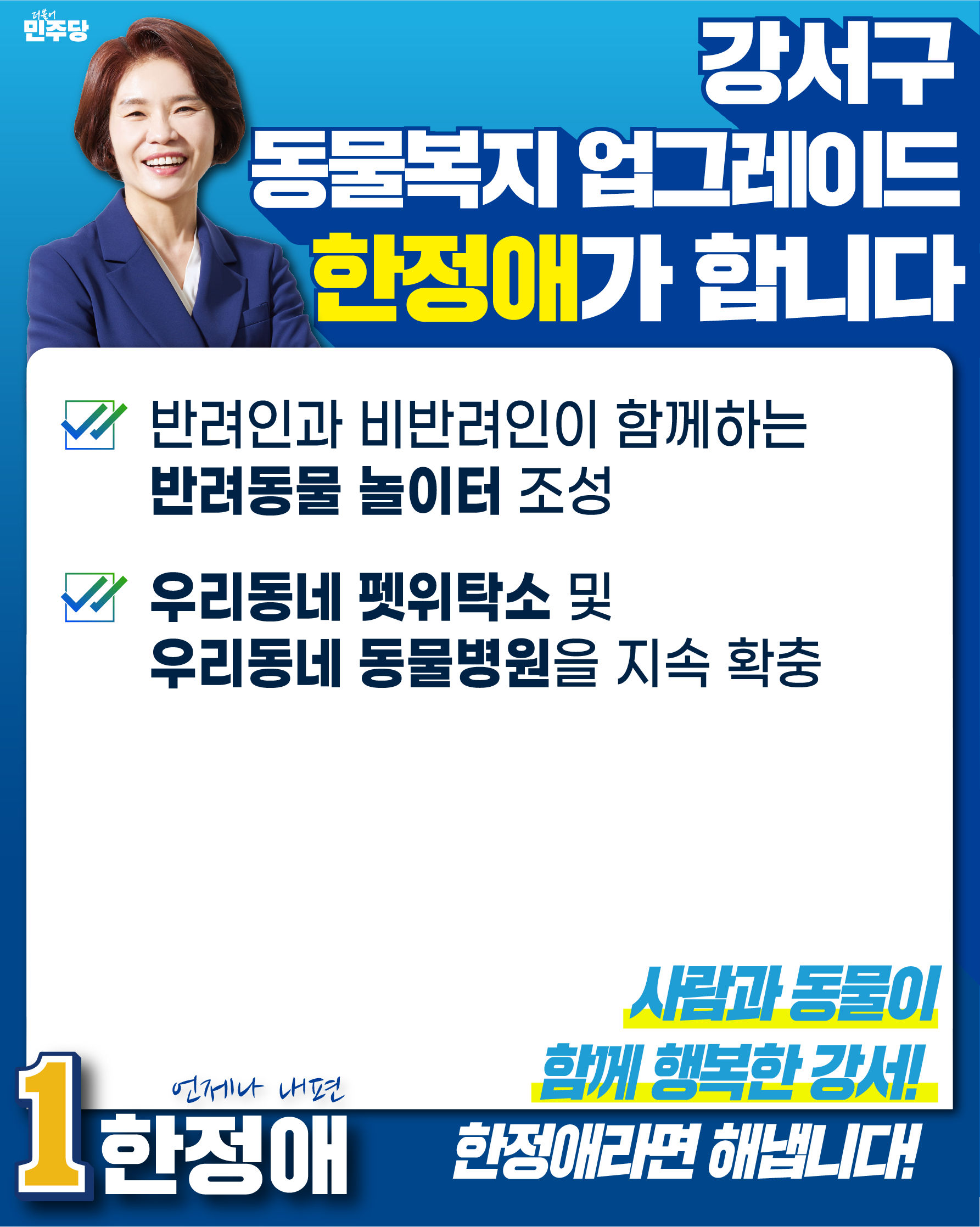 사람과 동물이 함께 행복한 강서, 한정애라면 해냅니다!