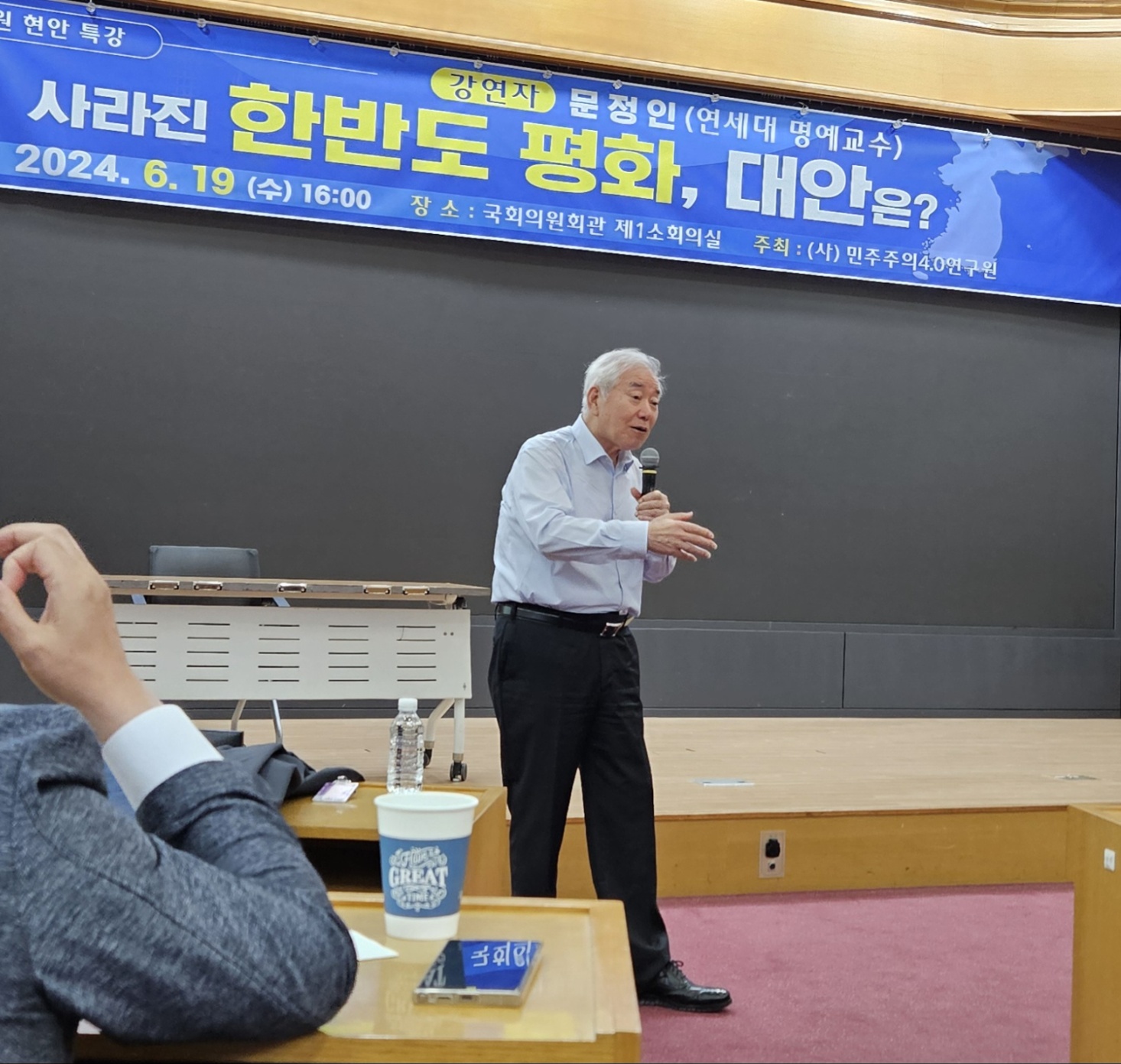 오늘 오후, `사라진 한반도 평화, 대안은?`주제의 문정인 전 대통령 통일외교안보 특보의 강연을 들었습니다.